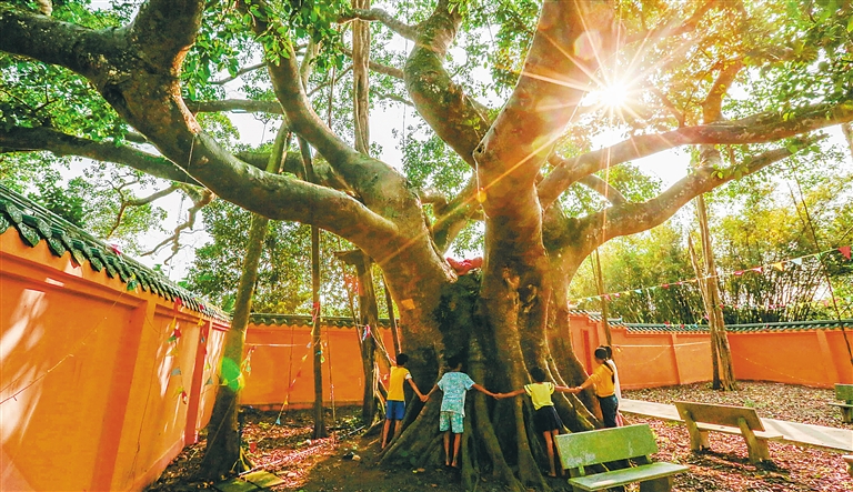 在海口市石山镇福安村道崖村民小组,有一棵树龄为240多年、平均冠幅为73米的高山榕,在海口市第二次古树名木资源普查中,此树为最大冠幅古树。近日,海口市古树名木资源普查工作通过验收,海口共有1684株古树名木,其中包含94株名木。这次普查摸清了海口古树名木“家底”,为今后开展古树名木资源保护和利用提供了科学依据。
