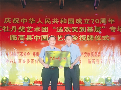 授牌仪式后,中国曲艺牡丹奖艺术团送上了“送欢笑到基层”演出,著名表演艺术家李金斗、巩汉林、戴志诚等为临高观众奉献了精彩的表演。