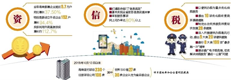 去年底,我省制定的《海南省优化营商环境行动计划(2018-2019年)》,从开办企业、获得施工许可、获得信贷和改善融资环境、纳税便利化、跨境贸易、建设服务型政府等11个方面提出40项具体措施。