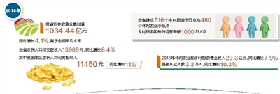 来自省农业农村厅的数据显示,建成516个乡村旅游示范点和460个休闲农业示范点,乡村旅游年接待游客突破1000万人次。2018年休闲农业和乡村旅游营业收入29.3亿元,同比增长7.9%;直接从业人数3.3万人,同比增长10.3%。