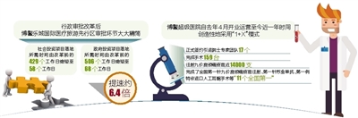 行政审批改革后,审批环节大大精简。社会投资项目落地所需时间由改革前的429个工作日缩短至58个工作日,政府投资项目落地所需时间由改革前的506个工作日缩短至68个工作日,提速约6.4倍。