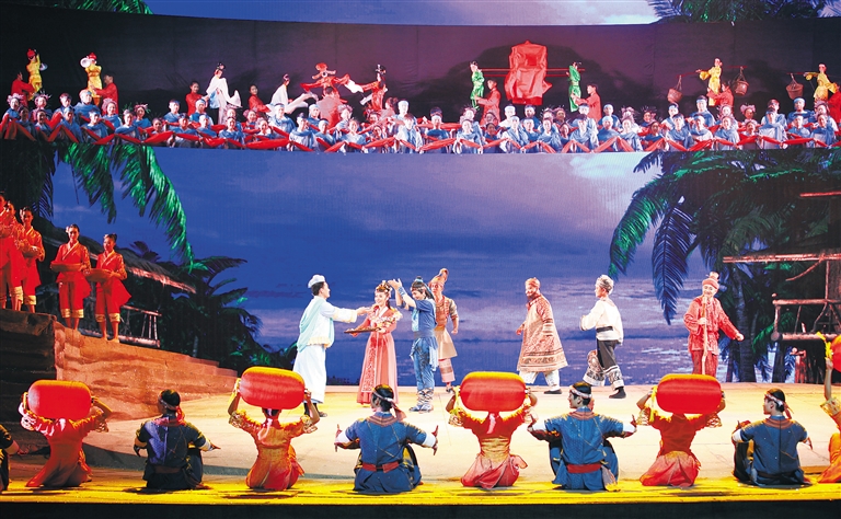 “临高人特别爱看戏,这就是文化底蕴。晚上一搭台,灯光一亮,全村人都会过来。”临高县歌舞团团长陈欣子说。县歌舞团承担文艺扶贫、文化惠民演出的重任,在2018年下乡演出了90多场,政府的中心工作是什么,文化演出内容就跟进,围绕着政府的中心工作,创作了一批新文艺作品。