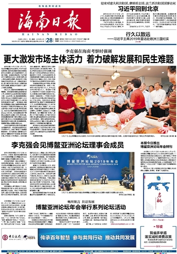 | 海南日报 头版 001 2019-03-281 2019年03月28日 星期四 |