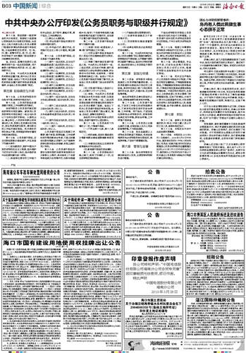 | 中共中央办公厅印发《公务员职务与职级并行规定》 | |