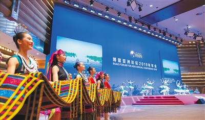 这场“小而精”的文艺演出只有5个节目:舞蹈《博鳌春色》(见右图,本报记者 宋国强 摄)、汉唐乐舞《相和歌》、京歌演唱《梨花颂》、舞蹈《万泉河水》以及合唱《共同家园》。精心编排的5个节目从不同角度,帮助海南借博鳌亚洲论坛这一国际化平台“传情达意”。