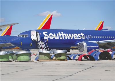 3月28日,在美国加利福尼亚州维克托维尔,美国西南航空公司的波音飞机停在南加利福尼亚物流机场。