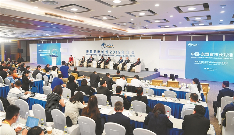 3月29日上午,在博鳌亚洲论坛2019年年会“中国-东盟省市长对话”会上,嘉宾们围绕“中国-东盟互联互通与海南自贸港建设”主题,探讨加强中国和东盟国家的互联互通及深化双方经贸合作的具体对策。