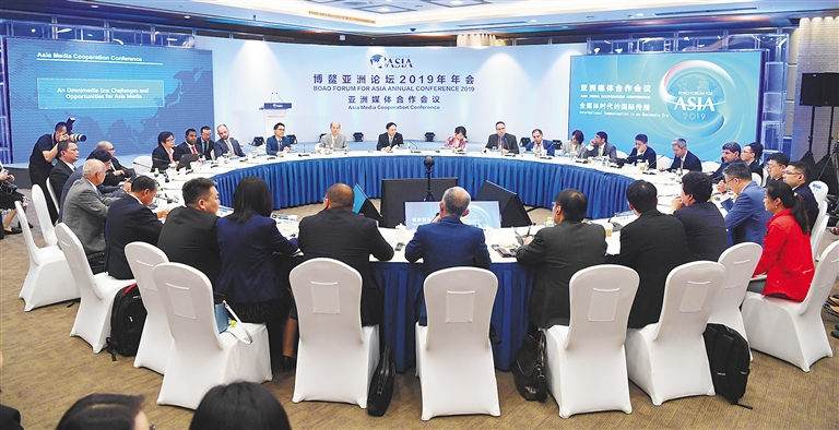 3月29日,博鳌亚洲论坛2019年年会“亚洲媒体合作会议”举行。来自20个亚洲国家的媒体和互联网行业代表围绕“全媒体时代的国际传播”主题进行了热烈探讨。
