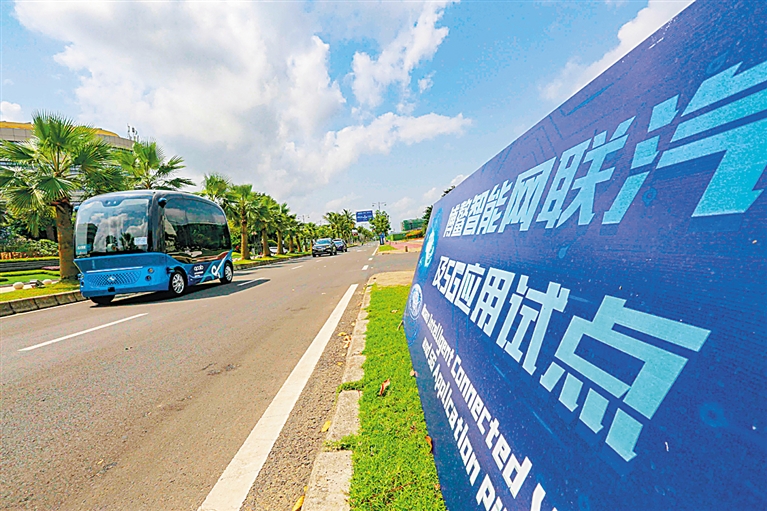 3月27日,在海南博鳌乐城康乐路的博鳌智能网联汽车及5G应用试点项目现场,参加博鳌亚洲论坛2019年年会的嘉宾与媒体工作人员搭乘无人驾驶小巴士以及小汽车,体验无人驾驶汽车的美妙感受。这些无人驾驶车辆未来有望在景区、机场等地投入使用。本报记者 陈元才 摄