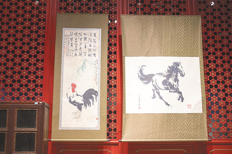 此次展览还展出了著名国画大师徐悲鸿赠送给韩槐准的两幅作品,旁边附有题词。这两幅佳作也让人们了解到了韩与徐二人之间深厚的友谊。