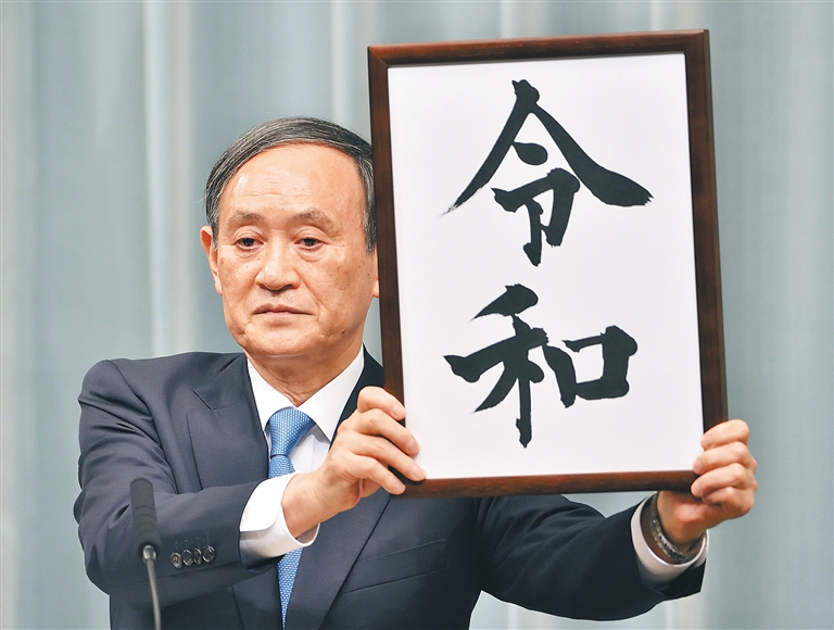 1日上午9时30分,日本首相官邸召开年号恳谈会,就备选年号征求专家最终意见。经与国会众参两院议长商议、全体阁僚会议讨论,大约两个小时后,内阁官房长官菅义伟召开记者会,发布新年号“令和”,白底黑字,毛笔书写,用木框装裱。