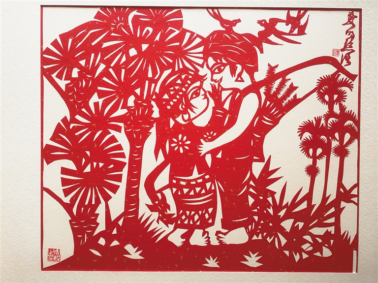 “中国古老的剪纸艺术,大体上而言,北多为剪、南多为刻,创作形式的固定意味着发展方向的不同,艺术上的突破与成就也呈现在两个方向。”周烨说,相比之下,传统的黎族剪纸创作更加自由、题材更为广泛,从窗花年画到山水风景,一把剪刀一张红纸,便能完美呈现。