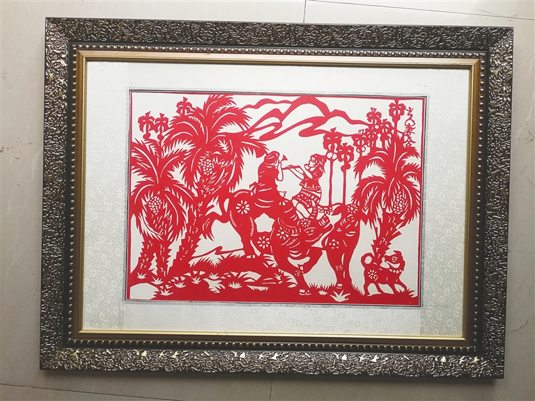 为了给创作带来更多的可能性,周烨还融合了北方剪纸与南方刻纸两种创作手法,结合黎族传统的民俗文化,创作出了一幅幅具有鲜明民族特点的作品。