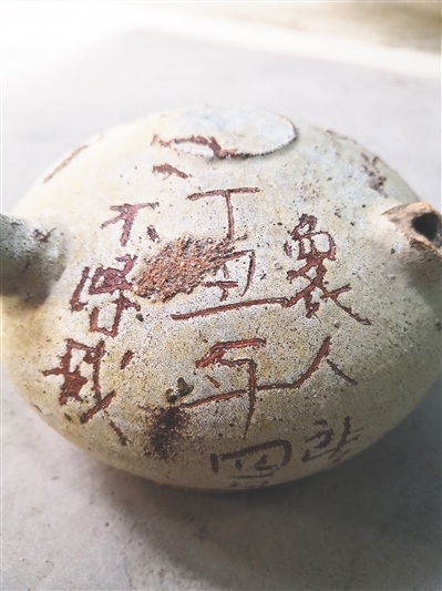 三曲沟窑址的器物多以大器居多,有些大罐高近一米,还有些陶缸、大碗,多是老百姓生活中的常用器,是名副其实的民窑。其中还见到一件陶质的秤砣,与其他窑口如福安窑等的罐型瓷权完全不同,而是呈馒头形,上面有一小孔,与常见的铁质秤砣别无二致,相比而言当然更为廉价。还有一件带有纪年款的壶形器,上面刻有“众人所用,丁丑年四月十八,不得灭”的繁体字,算是三曲沟窑址中比较特别的器物,具体的用途还不得考。