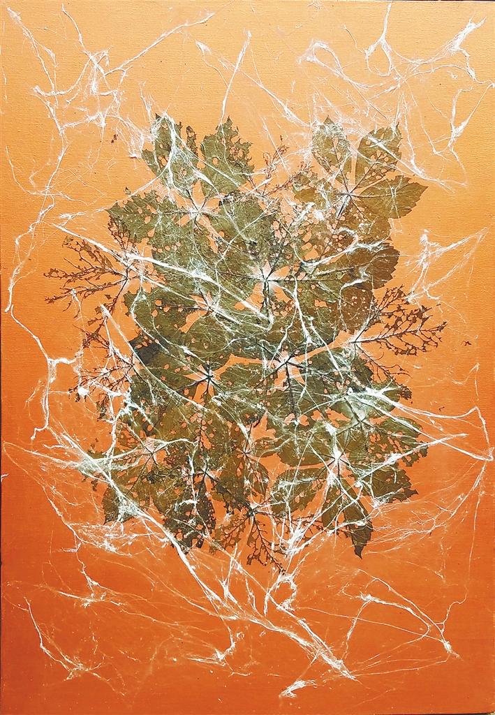 “这些叶子都是真实的虫蛀的叶子,这幅上面是蜘蛛网,还有一幅为了表现更强烈的束缚,就选择了铁丝网。”1970年,张智罡出生于江苏苏州,父亲是位画家,小时候常常跟父亲去上海看展览,耳濡目染陈逸飞等上海老一辈画家的绘画技法。后来,他就读于中央美术学院,没有学油画、中国画、雕塑等实践艺术,而选择了美术理论专业。