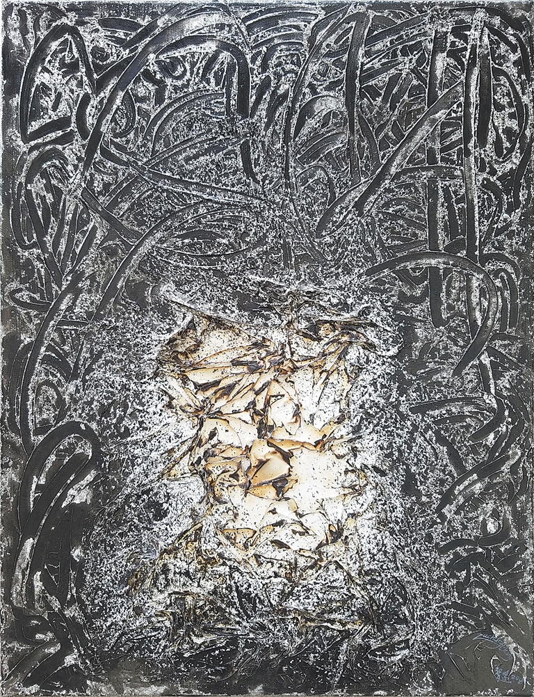 《限制》系列作品以虫蛀、火烧、自然锈蚀、现成品重组等作为主要创作手法,探讨各种基于社会、自然、人性、宗教等对于生命本身的限制,展现处于限制状态中生命的压抑、扭曲、被伤害和寻求解脱的愿望。