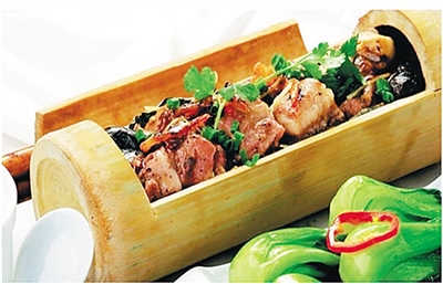 黎家竹筒饭竹节青翠,米饭酱黄,香气飘逸,柔韧透口。吃时,饮一口黎家“山兰酒”,咬一小口竹筒饭,慢品细嚼,趣味盎然。