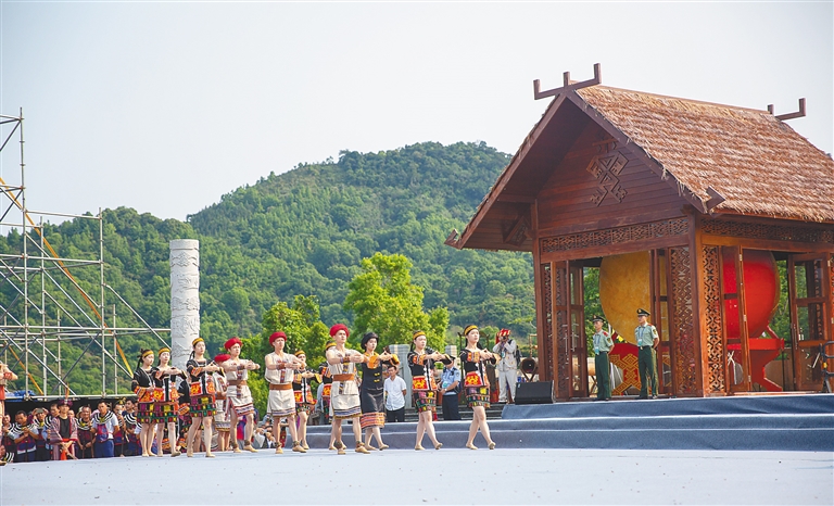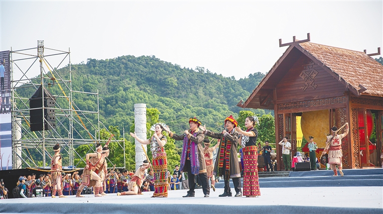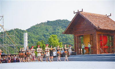 当天,旭日从五指山间露出,照亮了整个水满小镇。上午9点,随着迎宾号角的吹响,嘉宾入场。祭祀大典由五指山市委副书记、市长陈振聪主持。己亥年三月三祭祀袍隆扣大典正式宣布开始后,嘉宾们向袍隆扣敬献花篮,全体向袍隆扣行三鞠躬礼。