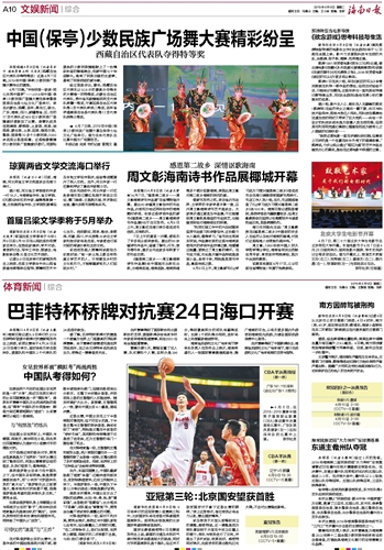 海南日报 文娱新闻 体育新闻 010 2019-04-091 2019年04月09日 星期二