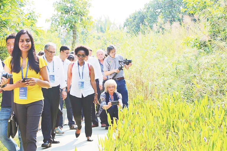 南非院士科学家考察团一行先后参观考察了美安生态科技新城、药谷工业园区代表企业,纷纷对美安优美的生态环境表示赞赏,肯定园区企业高效规范的管理运营模式。