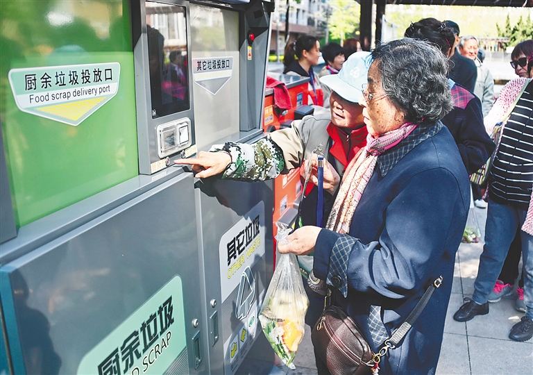 当日,一套新型智能垃圾分类箱在北京市东城区崇外街道新怡家园社区落户。该智能垃圾分类箱具有满载警示预警、智能投放装置、投口防夹手功能、温度检测功能、便捷投递灯、定位等多种功能。智能垃圾分类箱容量为240L,当垃圾桶容量达到上限时会自动通知后台进行垃圾箱的清运更换。 新华社记者 李欣 摄