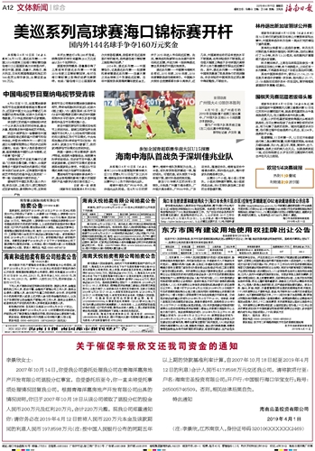 海南日报 文体新闻综合 012 2019-04-111 2019年04月11日 星期四