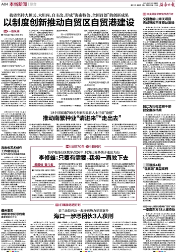 海南日报 本省新闻综合 004 2019-04-121 2019年04月12日 星期五
