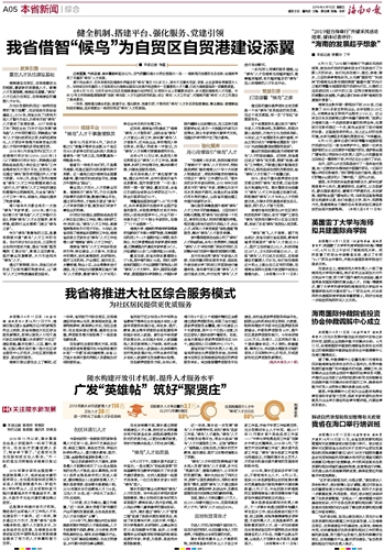 我省借智“候鸟”为自贸区自贸港建设添翼
