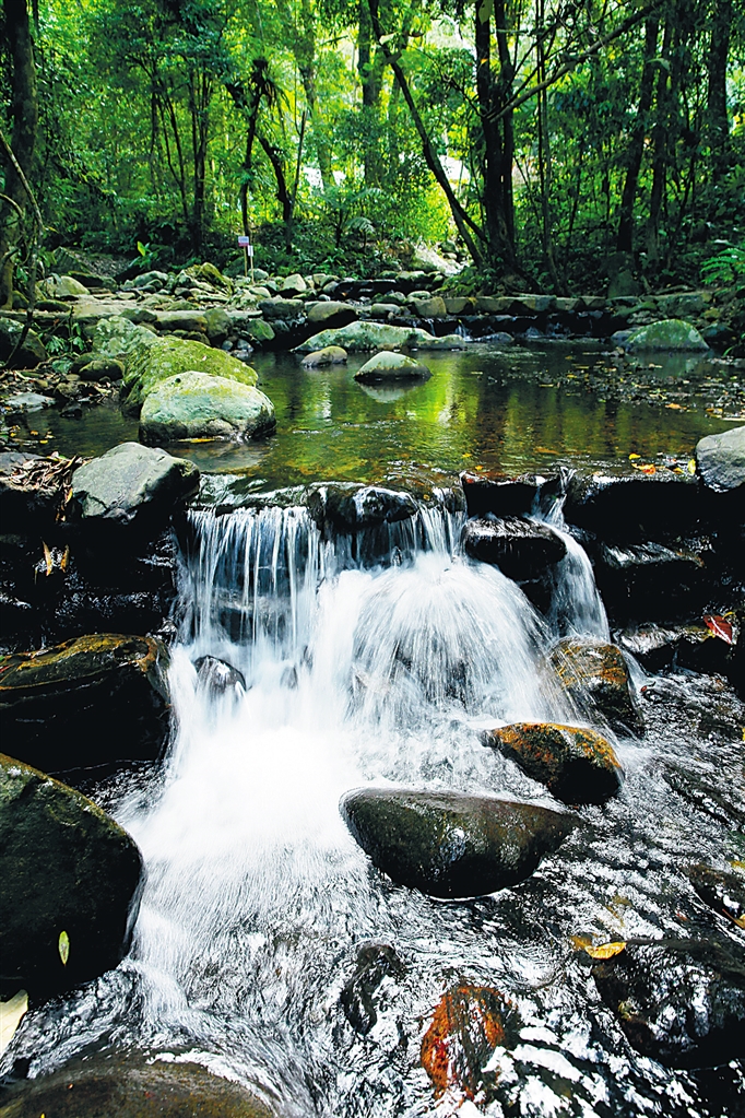 有着生态雨林八大特征、物种丰富的百花岭集奇、秀、雄、美为一体,雨林、飞瀑、温泉、湖泊、溪流、沟谷、奇石、黎苗村寨等各类人文与自然资源和谐交融。从前,游客来到百花岭,只有观音庙、瀑布可供游玩,可谓“两点一线无处看”,通过4年高标准的筹备与建设,百花岭雨林文化旅游区如今“移步换景处处美”。