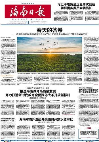 海南日报 头版 001 2019-04-131 2019年04月13日 星期六
