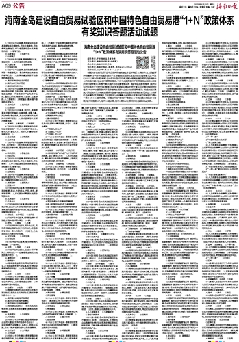 海南全岛建设自由贸易试验区和中国特色自由贸易港“1+N”政策体系有奖知识答题活动试题