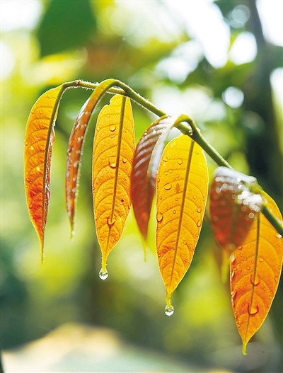 从空中俯瞰热带雨林,可以看到茫茫绿海中点缀着簇簇红色,在阳光中闪耀。那并不是红花,而是红色的树叶。在季节性热带雨林,老叶脱落、新叶萌生时,这些红色的树叶在绿海映衬中非常醒目。