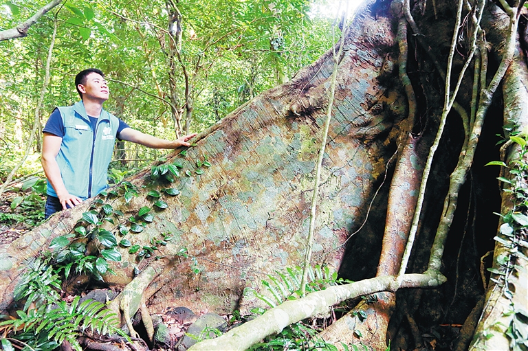 在百花岭雨林,“板根”现象比比皆是,它们多为榕树、蝴蝶树、长芒杜英等树木的根。