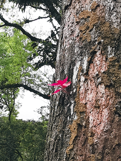 细心的游客会发现,在百花岭菩提湖旁的几棵高大的枫香树树干上长着一些红色的枫叶,这就是热带雨林中的红叶现象。