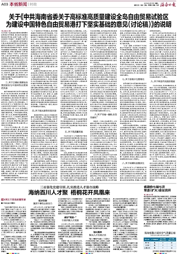 关于《中共海南省委关于高标准高质量建设全岛自由贸易试验区 为建设中国特色自由贸易港打下坚实基础的意见(讨论稿)》的说明