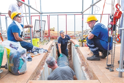 日前,海南澄迈500千伏林诗岛终端站,外籍工作人员在加紧施工。4月上旬,重点工程海南联网二回工程海底电缆广东侧作业全部完成后,项目团队转场澄迈林诗岛,对海南侧海底电缆接头进行安装。