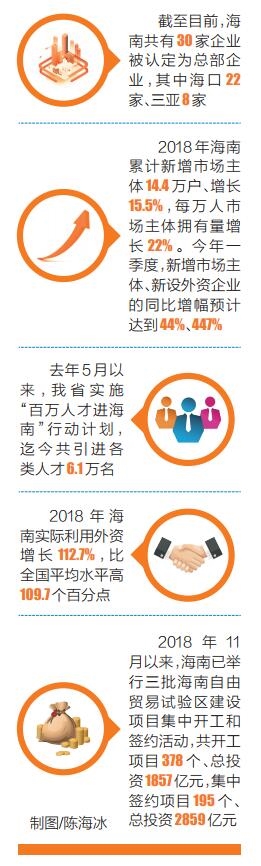 截至目前,海南共有30家企业被认定为总部企业,其中海口22家、三亚8家。