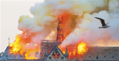 成千上万的民众和游人在塞纳河岸边看着燃烧的教堂祈祷歌唱。巴黎圣母院不仅是法国的,也是世界的,它的损毁是人类文明的损失,那滚滚的烟尘仿佛是世界的一声沉重叹息。