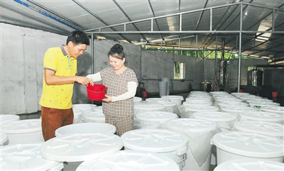 与此同时,他用猪粪便晒干、再腐化生虫后喂鱼,效益也特别好,年收入8万余元。