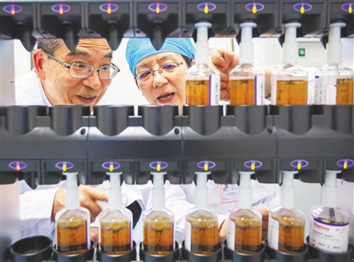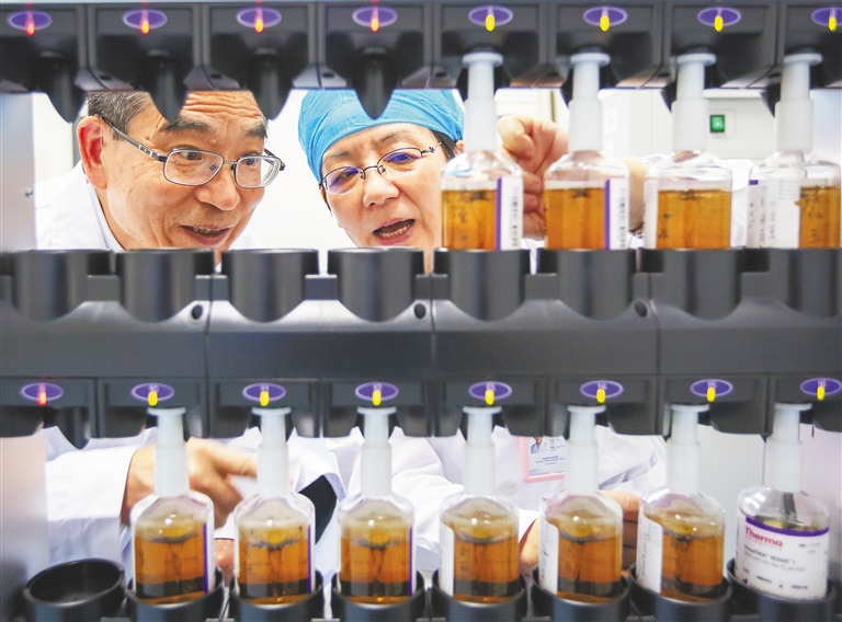 4月17日,位于博鳌乐城国际医疗旅游先行区的博鳌国际医院,两位日本专家在查看实验样品。该院通过引进国际高水平人才、带动本土人才“走出去,引进来”双向多元化培养模式,推进医疗前沿研究。本报记者 袁琛 摄