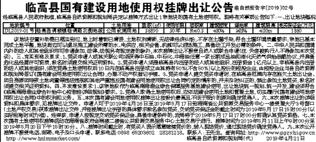 临高县国有建设用地使用权挂牌出让公告