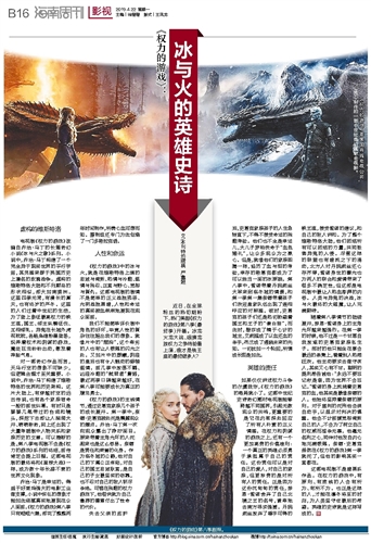 《权力的游戏》中的冰与火,就是在维斯特洛上演的忠诚与背叛、热情与冷酷、温情与残忍、正直与野心、宽恕与复仇。这部电视剧的剧情不是简单的正义战胜邪恶、光明战胜黑暗,人性和命运的真实被血淋淋地展现在观众面前。