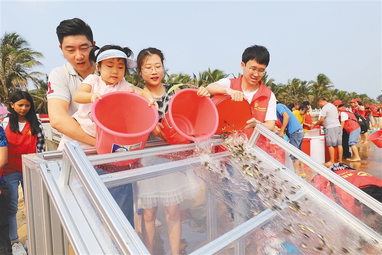 据了解,此次活动将慈善和环保相结合,旨在向社会各界人士发出保护海洋的倡议,呼吁大家呵护海洋生物、关注海洋生态。每年5月至7月是海南的休渔期,在海南近海水域开展水生动物增殖放流,能改善区域水域中的生物种群结构和维护生物物种多样性。本报记者 张茂 摄