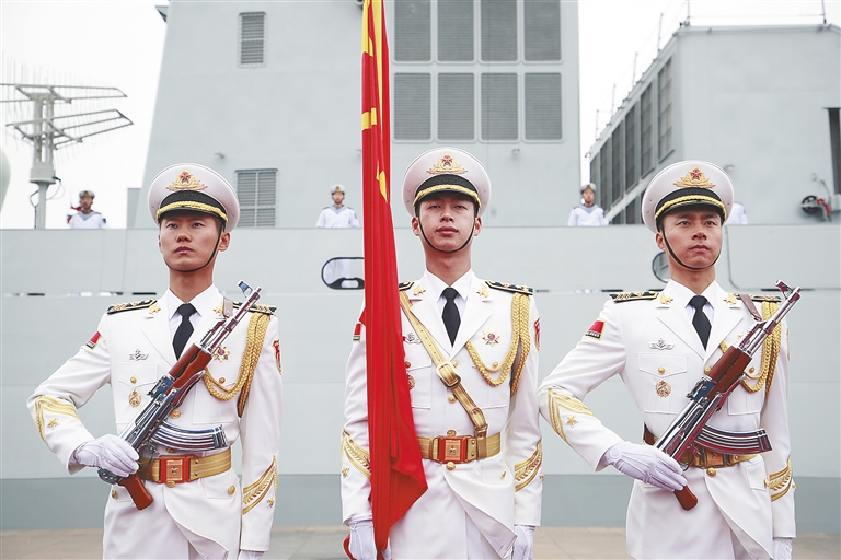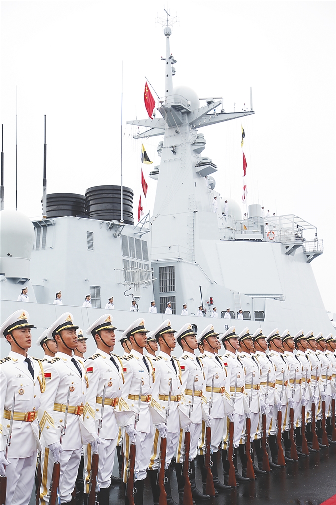 从执行首批亚丁湾、索马里海域护航任务的武汉舰、海口舰,到在战火纷飞的也门撤离多国侨民的临沂舰,再到多次赴海外执行人道主义救援任务的和平方舟医院船……受阅舰艇中那些广为人知的身影用行动证明,人民海军始终致力做世界和平与发展的促进者,始终致力做海洋命运共同体的构建者、维护者和贡献者。
