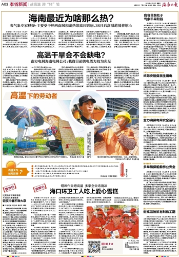 海南日报 本省新闻战高温 迎“烤”验 003 2019-04-241 2019年04月24日 星期三