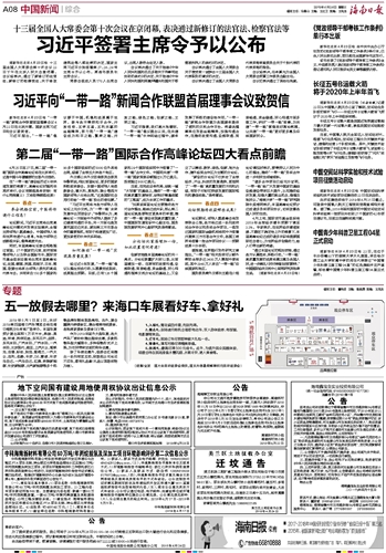 海南日报 中国新闻综合 008 2019-04-241 2019年04月24日 星期三