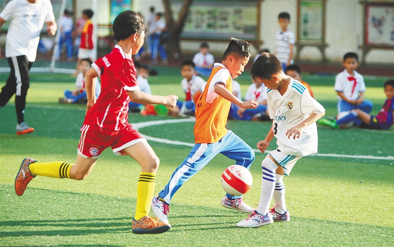 “每一场球赛都激动人心,参赛队员个个拼尽全力,操场外围满了观赛的师生和家长。”王有华介绍,在广大学生和家长的热情参与下,校园足球赛已经逐步常态化,几乎每个班级都有足球队,班级和班级之间经常比赛切磋,不同学校之间也常常组织友谊赛、交流赛。