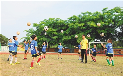2016年,王家能被调至太平中心学校任教,在校长曾令荣的大力支持下,他组建了一支留守儿童足球队。“太平中心学校地处太平片区,是澄迈县较落后的一个经济区域,为了挣钱养家,学生家长纷纷外出异地打工。在校就读的200余名学生中,留守儿童多达80余人。为了让球艺滋润留守儿童的心灵,让他们在球艺磋商与球技水平的提高中感受快乐、收获自信,我们允许留守儿童优先进入校园足球队。”校长曾令荣这样介绍道。