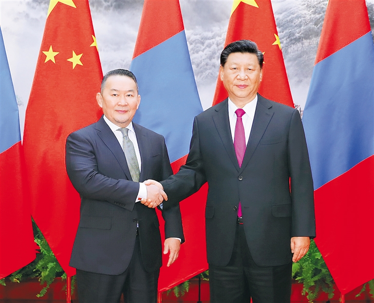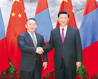 习近平指出,中蒙山水相连,是好邻居、好朋友、好伙伴。中方将同蒙方一道,牢牢把握正确政治方向,统筹规划推进全方位合作,做互尊互信的战略伙伴、互利互惠的合作伙伴、常来常往的友好伙伴、互帮互助的多边合作伙伴,努力构筑符合时代要求的中蒙关系,推动两国关系不断迈上新台阶。
