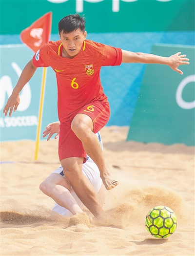 “能穿上中国队球衣,入选国家队在家门口——海口参加国际比赛,我感觉非常自豪。”26日,沙足中英之战后,中国国家沙滩足球队前锋王存得说。